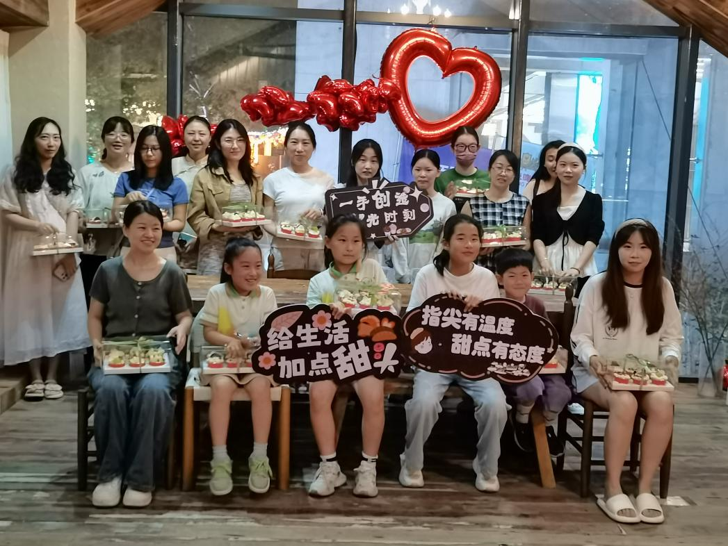制作過程中充滿了有愛的互動。學員們不時互相交流技巧,主動交換手中的裝飾材料,一起探討如何讓蛋糕更精致;有經驗的學員還主動分享自己的心得,幫助新手學員少走彎路;帶孩子的家長們則耐心引導孩子動手,有的幫孩子扶穩裱花袋,有的和孩子一起挑選水果,親子間的親密互動讓甜蜜中更添一份溫情。