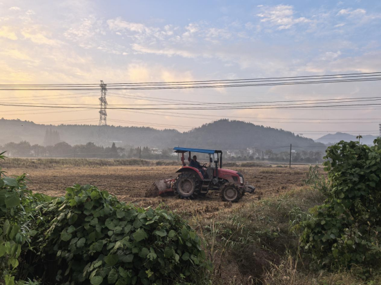 水稻收割現場,收割機穿梭在金黃稻田中,轟鳴聲里完成脫粒、清選等工序,大幅提升收割效率;部分地塊因地形限制,村民們手持農具輔助收割,人機協同確保顆粒歸倉。收割完成后,耕地機迅速進場,深耕翻土、平整地塊,為后續播種打下基礎。